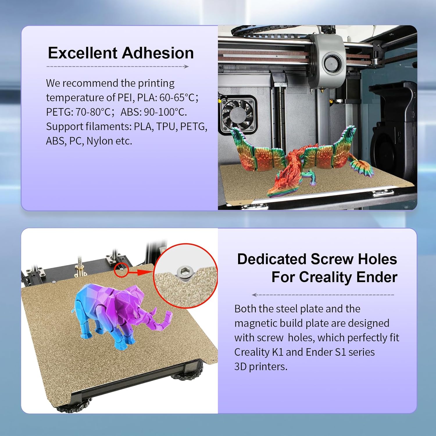IdeaFormer Double Sided Textured Gold PEI Spring Steel Build Plate with Magnetic Plate, 235x235mm for Creality K1/K1 SE/K1C/Ender 3 S1/Ender 3 S1 Pro/Ender 5 S1/Ender 3 V3 SE/KE/Ender 3 V2/Neo