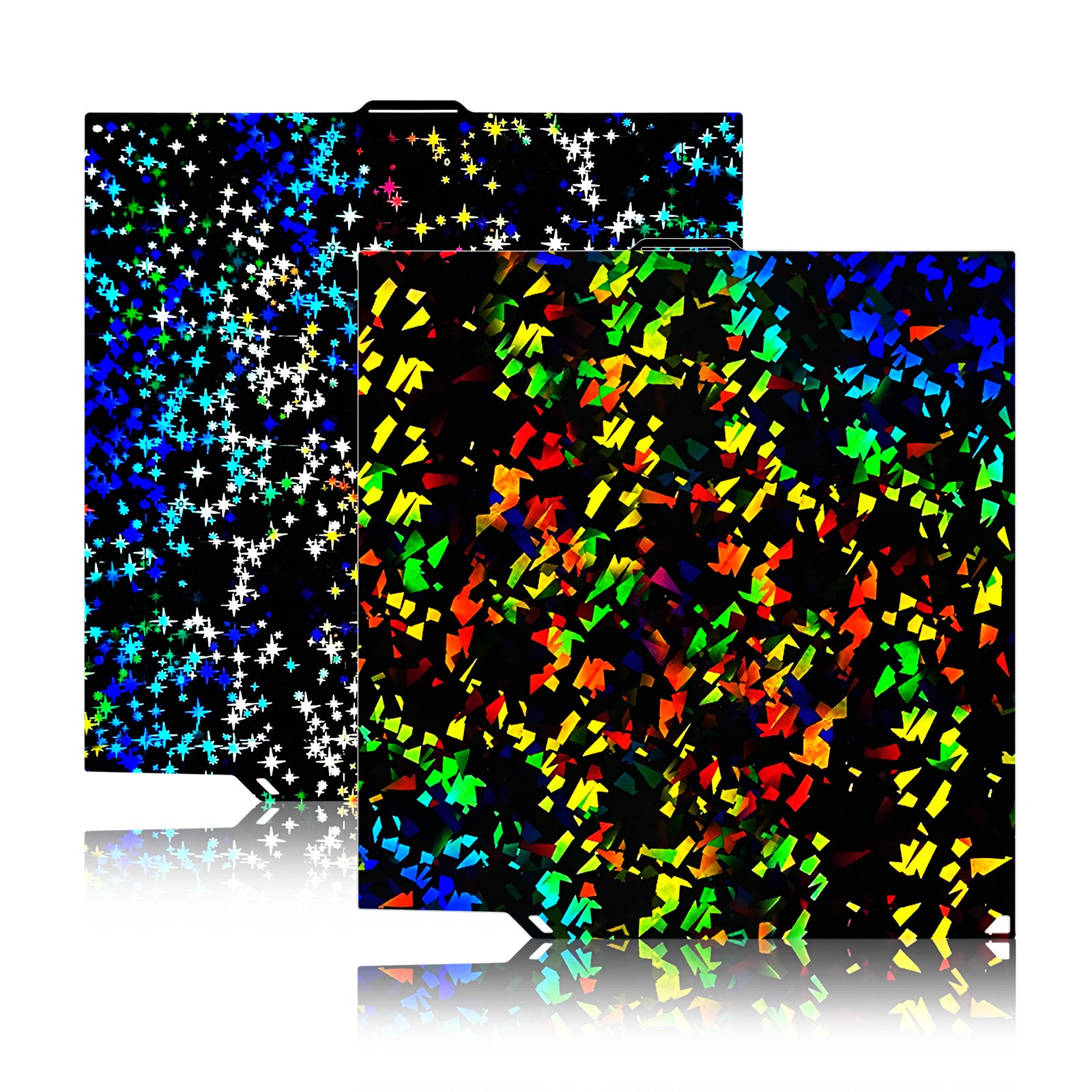 IdeaFormer Smooth Rainbow Confetti PEF+Galaxy PEY Spring Steel Build plate, 260×271mm for Elegoo Centauri Carbon