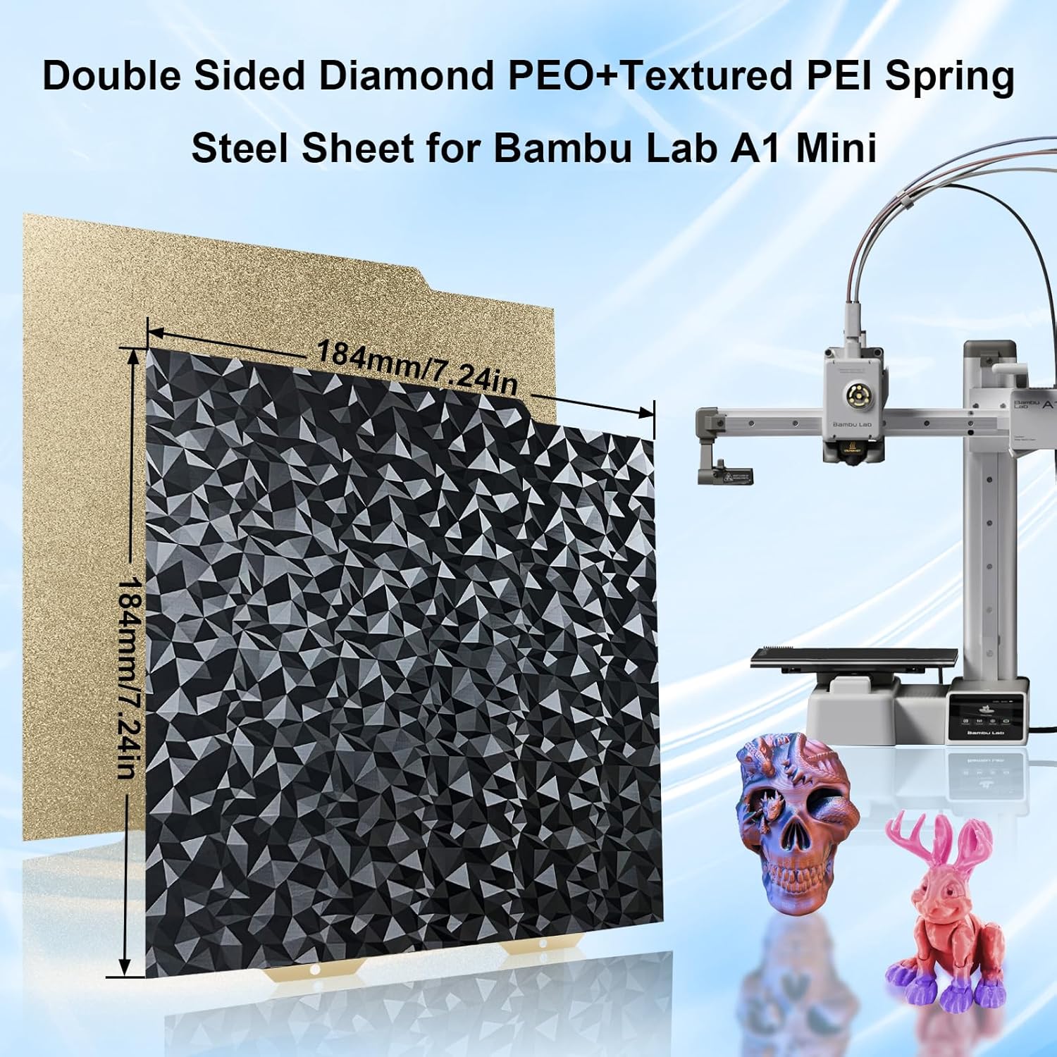 IdeaFormer Diamond PEO+Textured Gold PEI Spring Steel Build Plate, 184×184mm for Bambu Lab A1 MIni