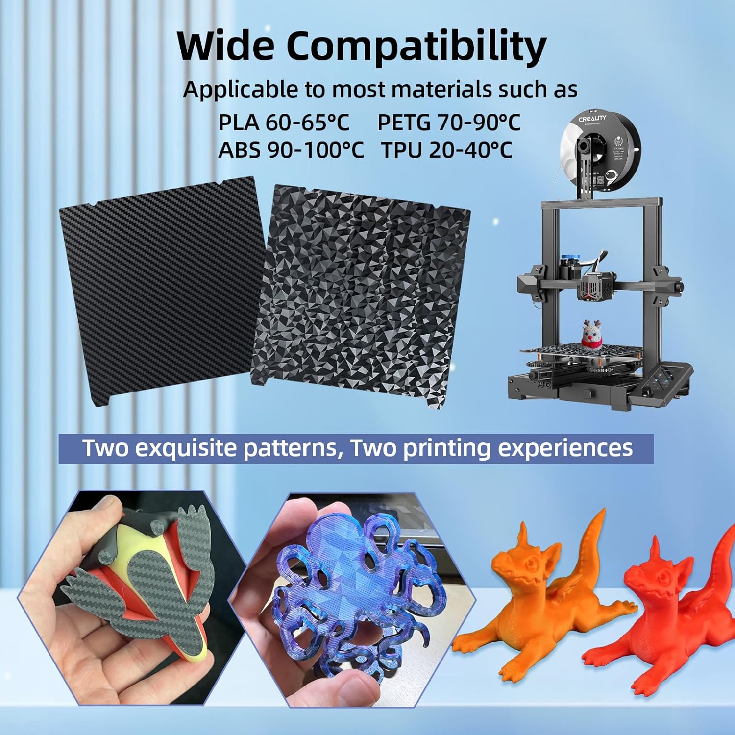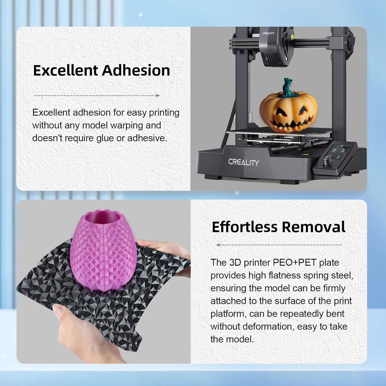 K1 K1C PEO PET 打印板,光滑 PEO PET 弹簧钢底板,无磁性打印板 235x235 毫米,适用于 Creality K1/K1C/K1 SE/Ender 3 S1/Ender 3 V3 SE/KE/Ender 3 V2/Ender 5 S1