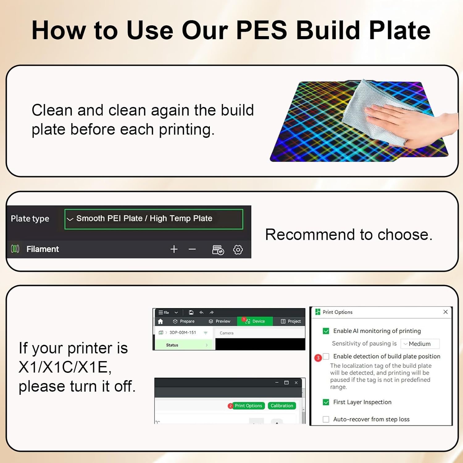 适用于 Bambu Lab X1/X1C/X1E/P1P/P1S/A1 的光滑彩虹网格 + 格子 PES 板,适用于 Bambu Labs 3D 打印机平台的柔性 PES 构建板 257x257mm