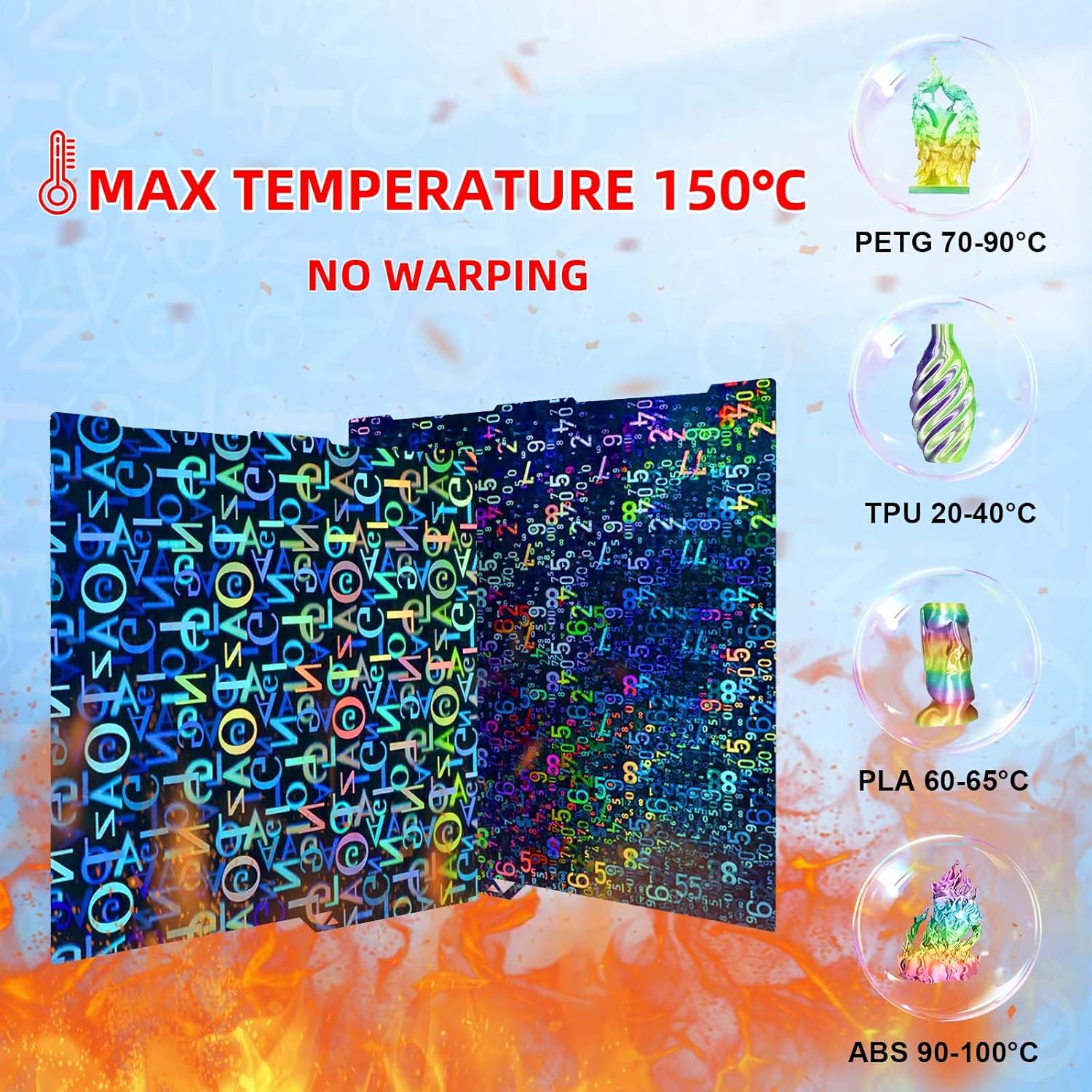 适用于 Anycubic Kobra 3/Kobra 3 Combo/Kobra 3 V2 的光滑数字+字母笔构建板,适用于 256x268mm 3D 打印机加热床的柔性弹簧钢板