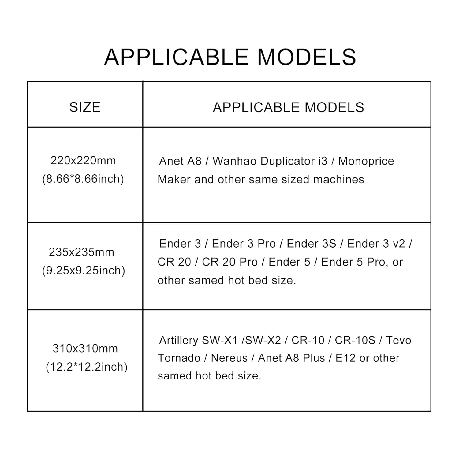 220*220mm/235*235mm/310*310mm 3D打印机升级钢化玻璃平台3D打印床,带4个夹子