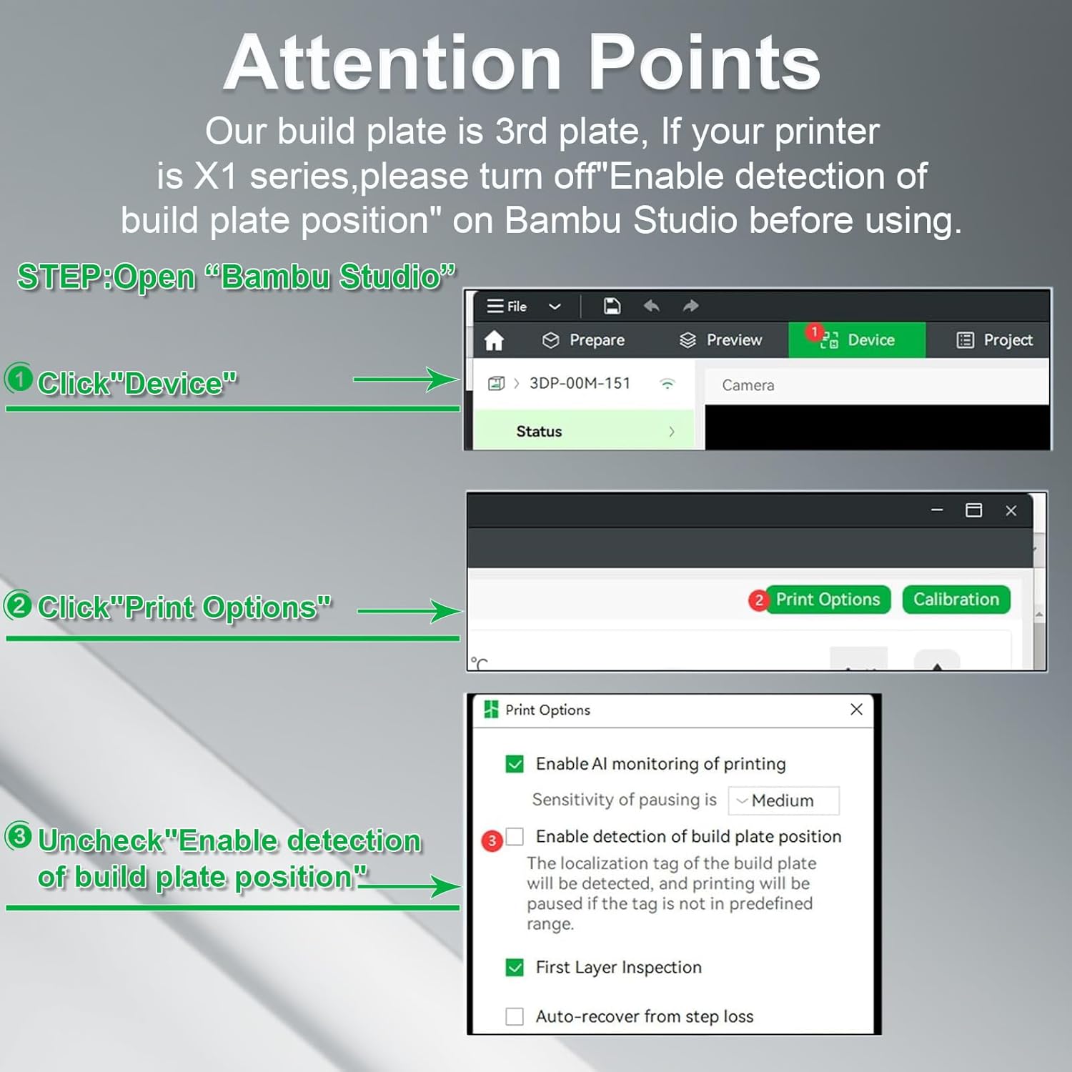 适用于 Bambu Lab X1/X1C/X1E/P1P/P1S/A1 的双面黑色 PEI 构建板,适用于 Bambu Lab 3D 打印机平台的柔性弹簧钢板 257x257mm