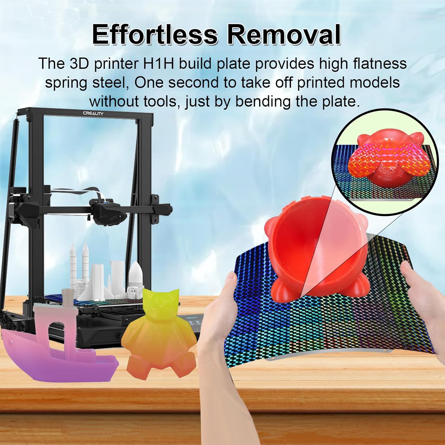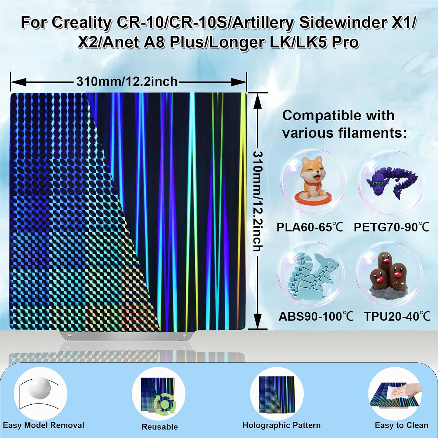 H1H 打印板适用于 Qidi Plus 4 适用于 Artillery Sidewinder X1/X2 适用于 Creality CR-10/CR-10S/Anet A8 Plus,H1H 弹簧钢板无磁性打印板 310x310mm