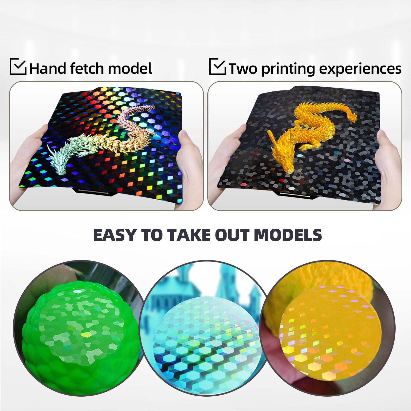 IdeaFormer Hew Glow + Water Cube PEG 打印板适用于 Bambu Lab P1P P1S A1 X1 X1 碳纤维,柔性弹簧钢打印板适用于 Bambu X1/P1 系列打印机
