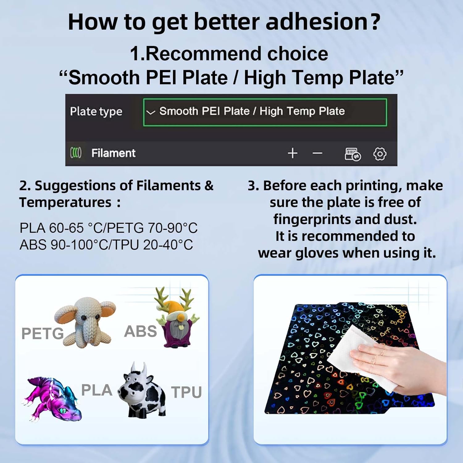 适用于 Bambu Lab X1/X1C/X1E/P1P/P1S/A1 的 PEH 效果板,适用于 Bambu Labs 3D 打印机平台的光滑甜心+水滴弹簧钢构建板 257x257mm