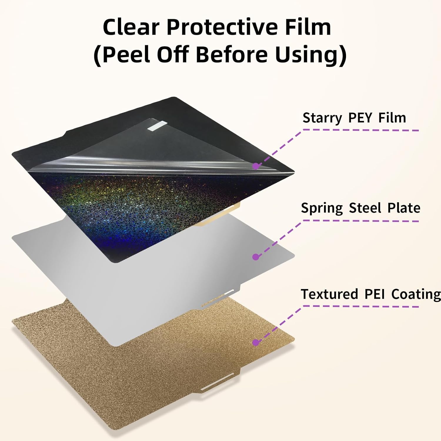 适用于 Bambu Lab X1C/X1/X1E/A1/P1S/P1P 的 Rainbow PEY+纹理 PEI 构建板,双面 PEY PEI 弹簧钢板 257x257mm,适用于 Bambulab 3D 打印机